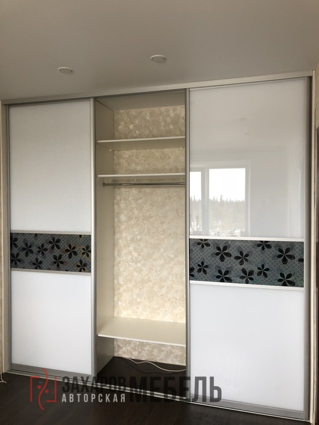 Как вы знаете, стекло отдает «зеленцой» и при заказе цветного стекла (стекло + пленка на обратной стороне), вы получаете не тот цвет на который вы рассчитывали. Мы в свою очередь гарантируем вам, что цвет выбранный в нашем каталоге будет соответствовать цвету вставок в дверях вашего шкафа-купе. Достигается это тем, что покупается совершенно белое(прозрачное) стекло.